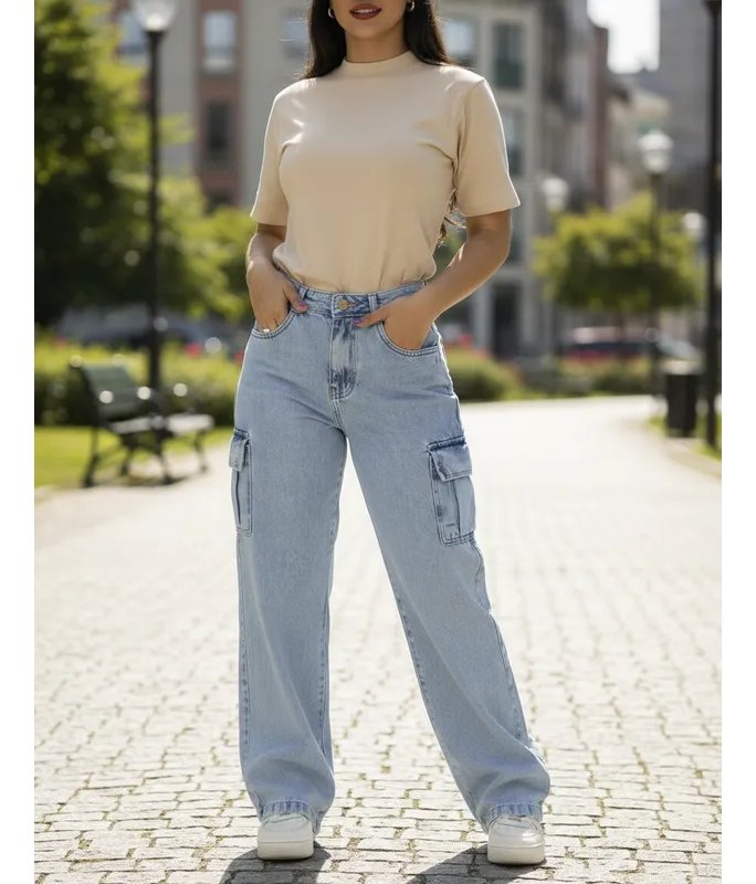 Quando pensamos em calças jeans, logo nos vêm à mente peças versáteis, práticas e que são essenciais no guarda-roupa de qualquer mulher. No entanto, se você está buscando por algo que combine estilo, conforto e uma modelagem incrível, a Calça Jeans Cargo Levanta Bumbum Cintura Alta pode ser a escolha perfeita para você. Além de ter tudo o que há de mais moderno e funcional, ela ainda proporciona um toque sensual e elegante, realçando a silhueta de uma maneira que só a combinação de jeans e modelagem bem feita consegue.